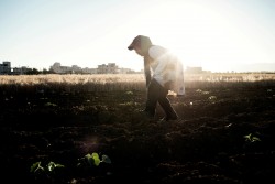 「太陽の強い日差しを受けながら、農場でジャガイモを収穫しています。お金は切実に必要だからです」と、ダイアナさんは言います。