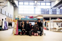 ベルリンの学校に滞在するシリア難民の家族(2015年12月撮影) |