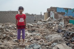 破壊された家の中に立つ女の子(イエメン・ラヒジュ)2016年8月撮影 |