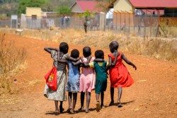 学校から一緒に帰る難民の子どもたち(ウガンダ) |