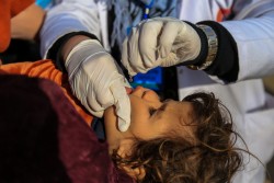 ポリオの予防接種を受ける子ども (イラク)2016年12月撮影 |
