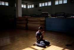 おとなの同伴者のいない子どものための施設で、祈りをささげる男の子(イタリア・シチリア島)2016年5月撮影 |