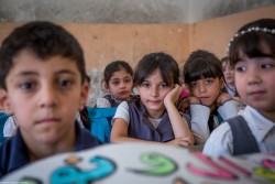 モスルにあるユニセフが支援する学校に通う子どもたち(2017年6月12日撮影) |