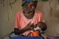 栄養治療食を与えられる9カ月の子ども(南スーダン・ジュバ) 2017年3月15日撮影 |