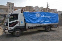 ユニセフの人道支援物資を載せたトラック (イエメン・サヌア)2017年6月22日撮影 |