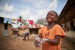 石鹸で手を洗う女の子(シエラレオネ)2017年3月26日撮影 |