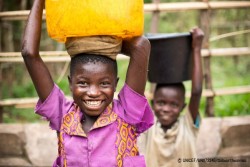 ユニセフの支援を受けて建設された水汲み場から、水を運ぶ子どもたち (カサイ地域)2017年5月18日撮影 |