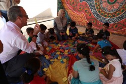 ユニセフ 中東・北アフリカ地域事務所代表のヘルト・カッペラエレが、リビアのトリポリにある、ユニセフが支援する「子どもにやさしい空間」を訪問。 |