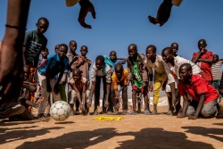 2017年2月、ナイジェリア・マイドゥグリの国内避難民キャンプにある小学校で、休み時間に遊ぶ子どもたち。