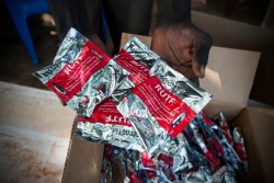 南スーダンで栄養治療に用いられている、栄養治療食「プランピー・ナッツ」。豊富な栄養素と必要なカロリーが含まれている。 |