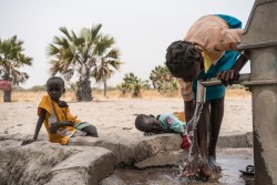 給水所に水を汲みに来た子どもたち。(南スーダン・アウェル)2017年3月撮影 |