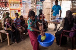 「キャンプで暮らしているロヒンギャの子どもたちは、ミャンマーのラカイン州北部での恐ろしい体験と危険な旅を生き抜いてきた子どもたちで、すでに惨事の中で苦しんでいるのです」とユニセフ・バングラデシュ事務所代表エドゥアルド・ベイグベデルは述べました。「特に重度の栄養不良に陥っている子どもたちは今、予防や治療が十分に可能な要因によって、命を落としてしまう危険に晒されています」