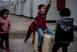 難民キャンプのごみ捨て場で見つけたスーツケースで遊ぶ子どもたち。(ギリシャ)2017年3月撮影 |