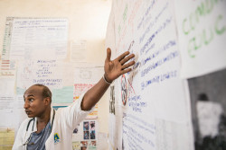 FGMについて注意喚起を行う看護師。(エチオピア)2017年5月撮影 |