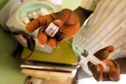 シエラレオネの病院で、黄熱病の予防接種の準備をするスタッフ。(2010年3月撮影) |