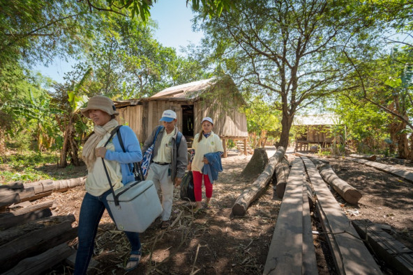 平日の朝、ヴォン・バナックさんの姿は、カンボジア北東部のサンボ村の保健センターで見かけることができます。バナックさんはここで、子どもたちに予防接種をおこなっているのです。けれども今朝はいつもとは少し違います。バナックさんの姿は、8キロ離れたコーサム村に向かって、メコン川を下るボートの上にありました。