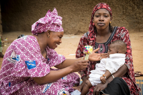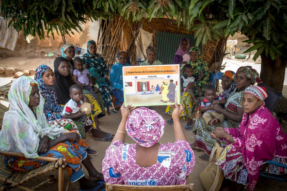 ここはマリのセグー地域。生後28日未満に亡くなる新生児の割合が20人にひとりと、世界でも最もその割合が高い地域のひとつです。ユニセフはこの地域で、「ママ・イェレーン」というイニシアティブを支援しています。現地語で「母親の光」を意味するママ・イェレーンは、すべて子どもが人生の最善のスタートを切るために、母親たちをサポートする取り組みです。