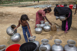 ユニセフとパートナー団体が運営する「子どもと女性にやさしい空間」の数カ所は、悪天候のために一時閉鎖され、何千人もの女性と子どもたちに影響を与えています。モンスーンによる豪雨の到来は、難民キャンプ内の健康上のリスク、特に急性水様性下痢症やコレラなど、水に起因する病気に罹る危険性を高めています。