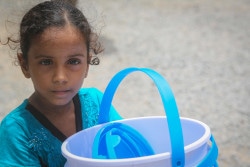 ホデイダでユニセフ支給の人道支援物資を受け取った女の子。(2018年6月30日撮影) |