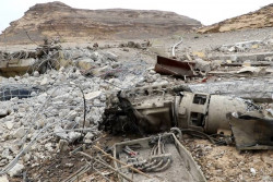 攻撃を受けた大規模給水施設(イエメン北西部サアダ県) |