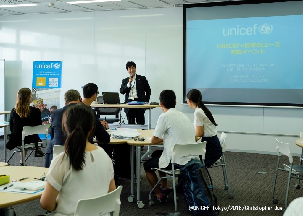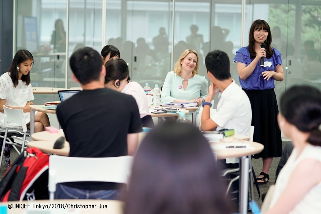 来日したユニセフ本部の幹部職員が、7月26日(木)、日本の高校生・大学生計23名と、東京大学の駒場キャンパスでの対話イベントに参加。集まった若者たちと、「公平性」について活発な議論を繰り広げました。