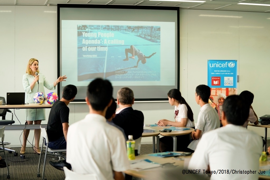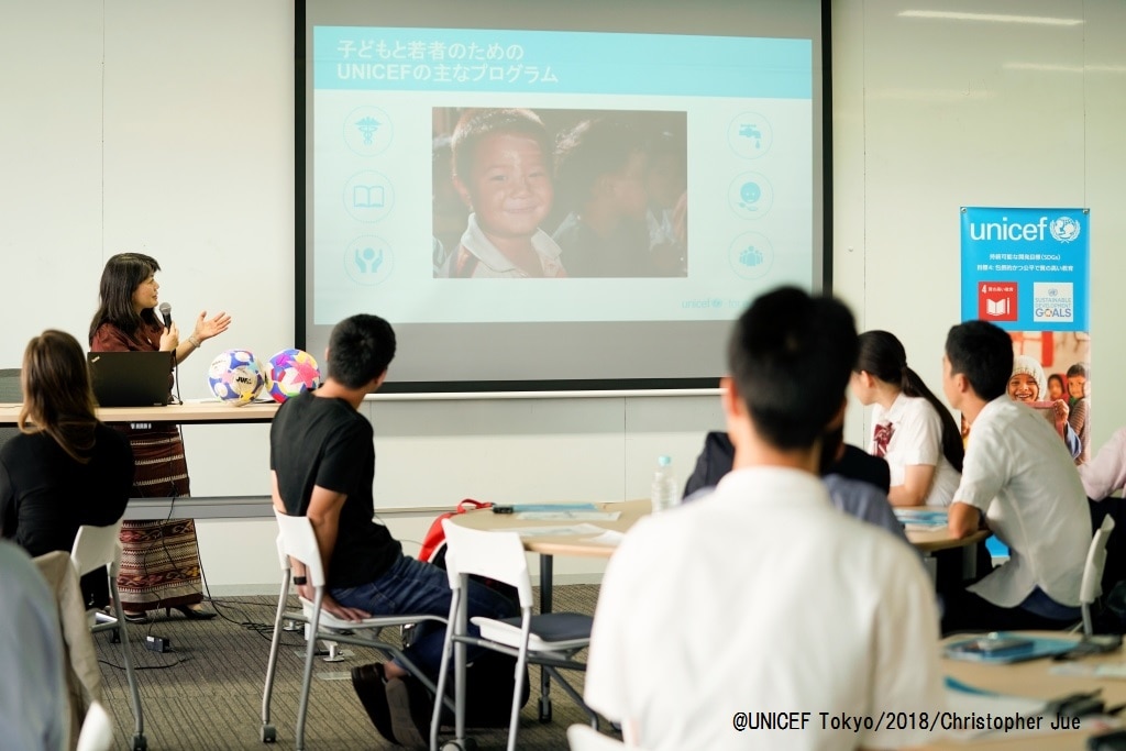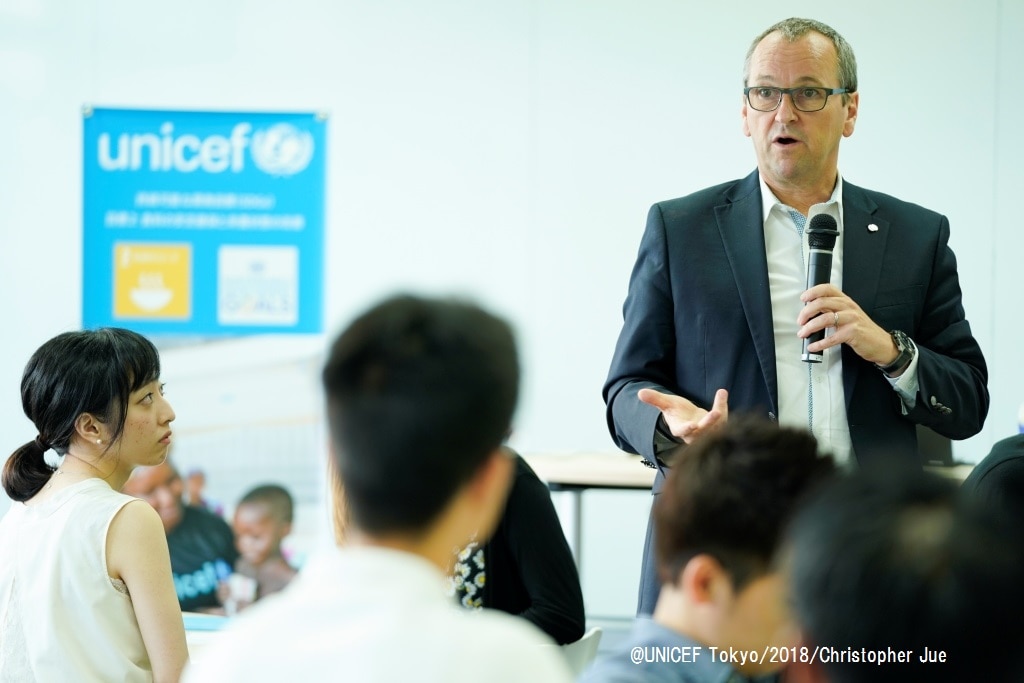そして、若者抜きでは、SDGsの達成はできないとし、ユニセフ事務局長ヘンリエッタ・フォアの指揮のもと、ユニセフが若者との共創にこれまで以上に取り組んでいくことを訴えました。そして、2030年までに「すべての若者が、教育、職業訓練、あるいは雇用されている世界」の実現に、日本の学生のイニシアティブもぜひ貢献してほしい、と期待を込めました。