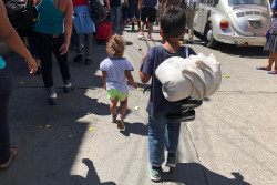 安全な環境を求め、「移民キャラバン」で北上する子どもたち。 |