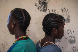武装グループから解放された15歳のゲルトレードさん(右)とペラジーさん(両方とも仮名)。(2017年11月撮影) |