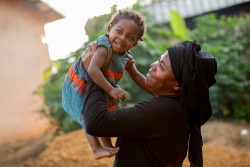 治療によりHIVの母子感染を予防することができた、カメルーンのアントワネットさんと娘のナターシャちゃん。(2018年7月撮影) |
