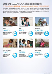 2018年1月~10月の間の実績として、3,530万人に安全な飲料水を、590万人の子どもに教育の機会を、470万人の子どもにはしかの予防接種を、310万人の子どもと保護者に心理社会的ケアを、260万人の重度の急性栄養不良の子どもに治療を提供した。