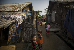 ラカイン州・シットウェの国内避難民キャンプで遊ぶ子どもたち。(2019年1月29日撮影) |
