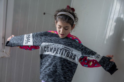 ユニセフ支援の冬服を受け取ったシリア難民の女の子。(2018年2月撮影) |