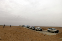 ルクバン近郊に到着したユニセフとシリア赤新月社が輸送する人道支援物資。(2019年2月6日撮影) |