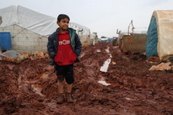 イドリブ県のアトマ(Atmeh)難民キャンプの外に立つ、6歳のアブドゥラマン君。(2018年12月撮影) |