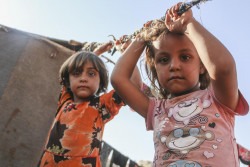 シリア国内の避難民キャンプに滞在する子どもたち。 |