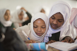 授業中、先生に教えてもらう12歳のファティマさん。 |