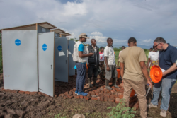 チクワワ地区のキャンプに仮設トイレを設置する様子。 |
