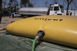 ユニセフは被災者が滞在するキャンプで安全な水を提供している。(2019年3月28日撮影) |