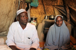 4人の娘がボコ・ハラムに拉致されたと話す父親のカディアさんと母親。 |