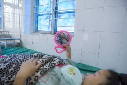 ベトナムの病院で、低体重で生まれた娘を抱く母親。 |