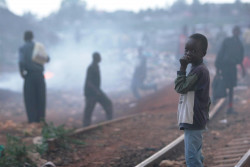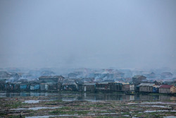 煙に包まれるナイジェリア・ラゴスの集落。 |