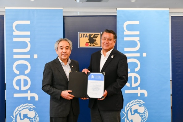 ユニセフと日本ユニセフ協会が2018年11月20日に発表した「子どもの権利とスポーツの原則」に、中央競技団体としてはじめて、日本サッカー協会(JFA)が賛同。13日に共同で記者発表を行いました。