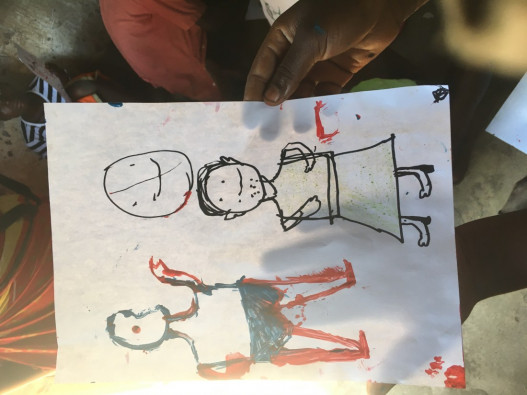 15歳の女の子、ルチア(仮名)は、描いた絵(下の絵)をもとに心の傷を打ち明けてくれました。「これはわたしと男の人。この人がわたしに一緒に寝るように言ってきました。なんとか逃れることができたけど、本当に怖かったです。」