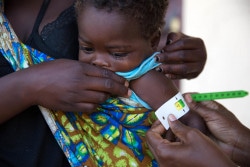 モザンビークで、栄養不良の検査を受ける1歳のマルケス・アントニオちゃん。(2019年4月撮影) |