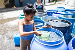 容器に水を汲む9歳のダグリアニス・ゴンサレス・サンチェスちゃん。(2019年7月25日撮影) |