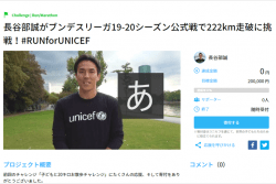 「僕は、#RUNforUNICEFのチャレンジとして、2019年度の公式戦で、僕が子どもの頃にサッカー選手になることを夢見ながら住んでいた藤枝市から、その夢を叶えた埼玉スタジアムまでの距離、222km走ることにチャレンジします!ただ、どの試合も勝利を目指してチームとして動いているので、足りなかった分はオフの自主トレで達成したいと思います。」