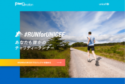 「#RUNforUNICEF」は「あなたも誰かのチャリティーランナー」をキャッチコピーに、フルマラソンへの挑戦や日々のジョギングの目標距離達成など、初心者から上級者まであらゆるレベルのランナーが誰でもユニセフのチャリティーランナーになれるオンラインの取り組みです。ホームページから登録するだけで、世界の子どもたちを支援する募金ページを簡単に作ることができ、その募金ページをソーシャルメディア等でシェアすることによって周りの方に応援の寄付を呼びかけることができます。