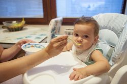 離乳食を食べるセルビアの生後10カ月のマルコちゃん。(2019年9月撮影) |