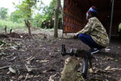 ヤンビオで行われた式典で武装グループから解放され、武器を捨てる17歳の子ども。(2018年4月撮影) |