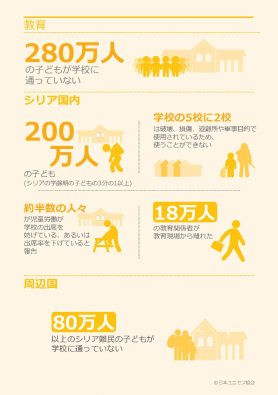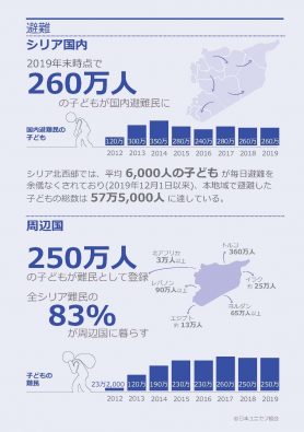 紛争が10年目に入った3月15日、ユニセフは子どもたちへの甚大な影響をまとめたインフォグラフ資料『SYRIA9』を発表しました。